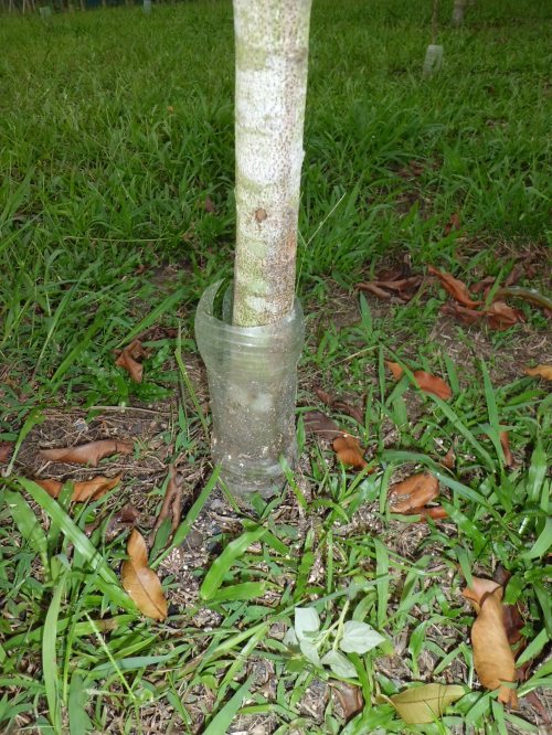 Physically i have seen this stem borer, sorry i do not know their names, i suppose there are few species in the nature. If yr trees are stronger enough, ie >5″ in diameter, it does not worry you. Or else you may inhibit the attack by using insecticide.