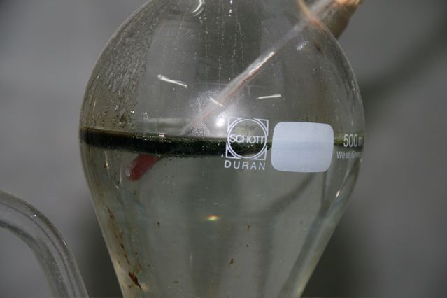 Oil and water don’t mix! The water is drawn off leaving Agarwood Oil.
