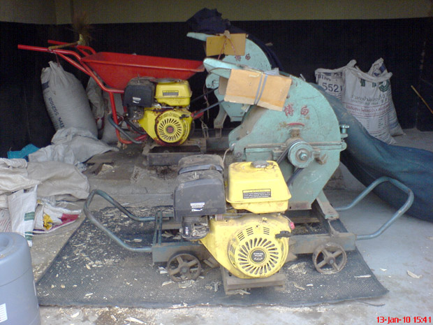 After the chips of infected agarwood have been left in the sun to dry for a day or two they are gathered up and put through a mechanical chipper which reduced them almost to sawdust. The purpose of sun drying, being to ease grinding into sawdust and killing unwanted fungal / bacteria prior to the following process, ie soaking for fermentation.