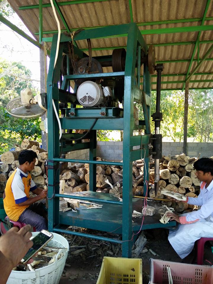 Chip infected wood off agarwood logs. Only the infected wood can be used for Agarwood Oil production