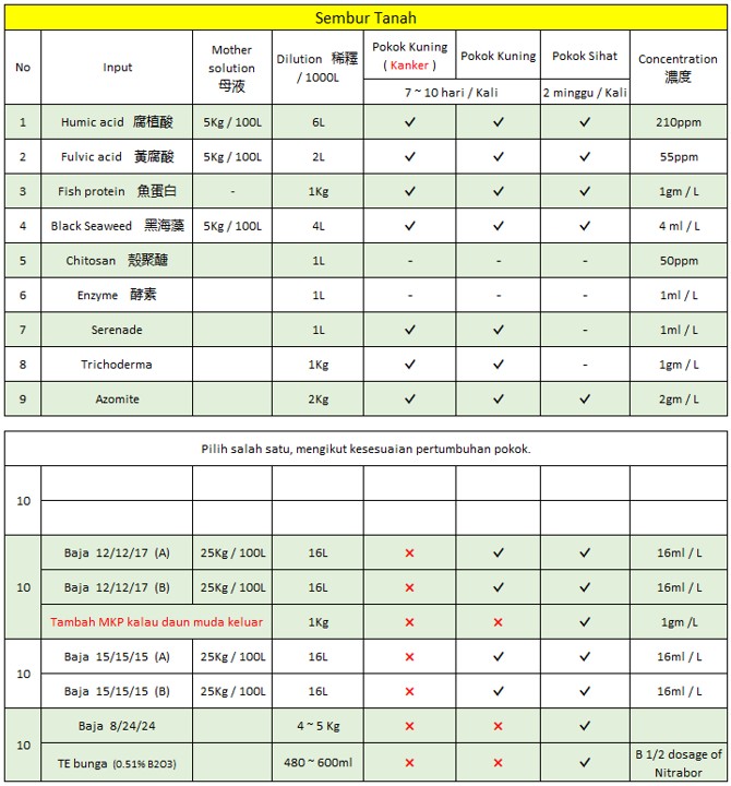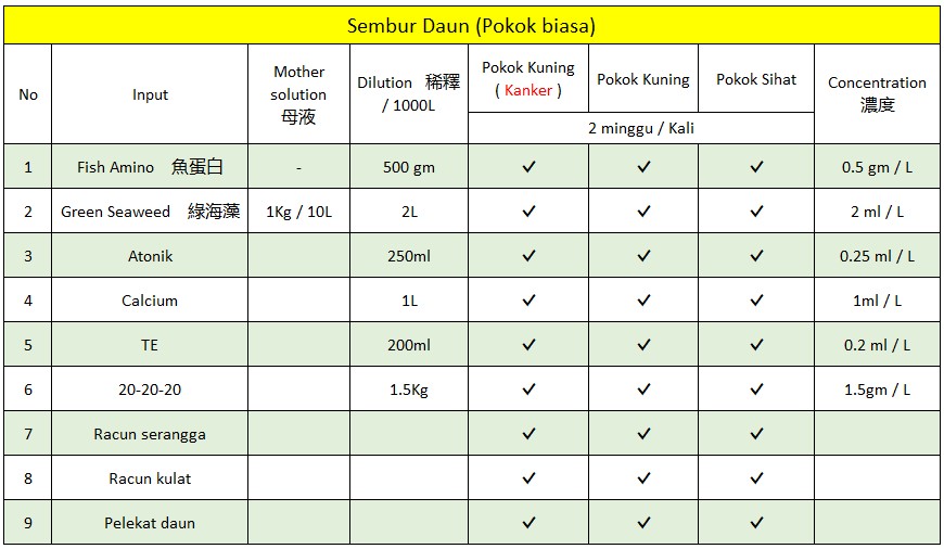 Recommendation treatment to durian trees, pls refer to below-mentioned proposal ..