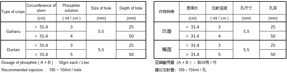 To combat Phytophthora, apply Phosphite (Combination of “Phosphorous acid + Potassium hydroxide” accordingly to the chart attached.