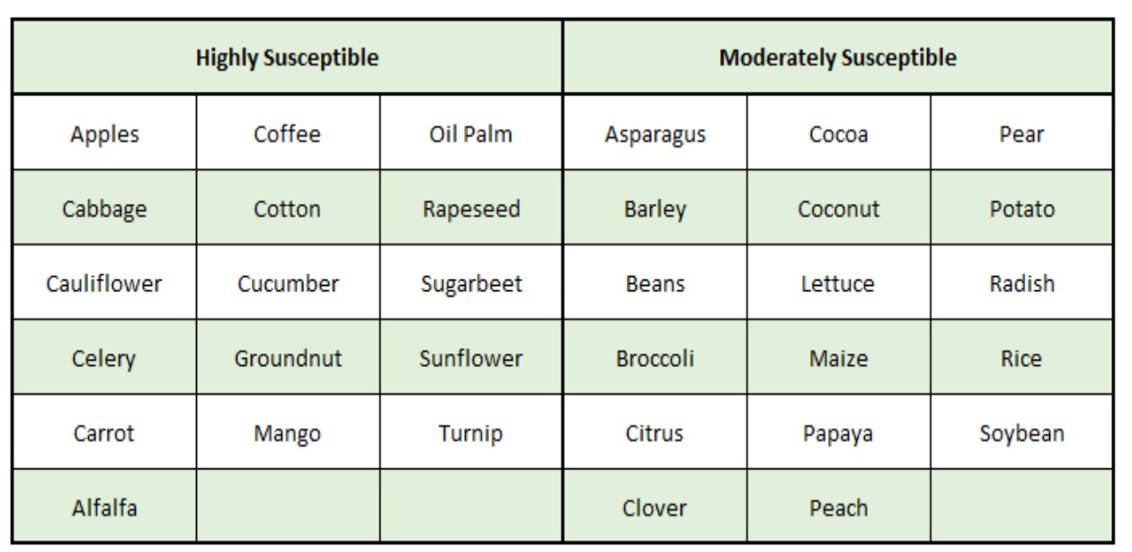 Crops susceptible to lack of Boron ..