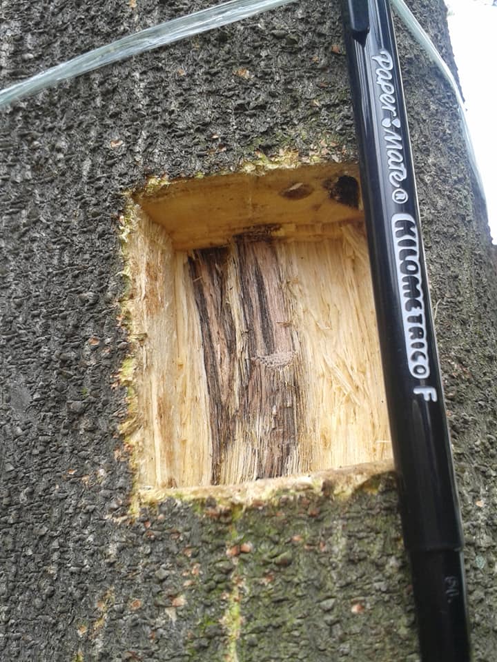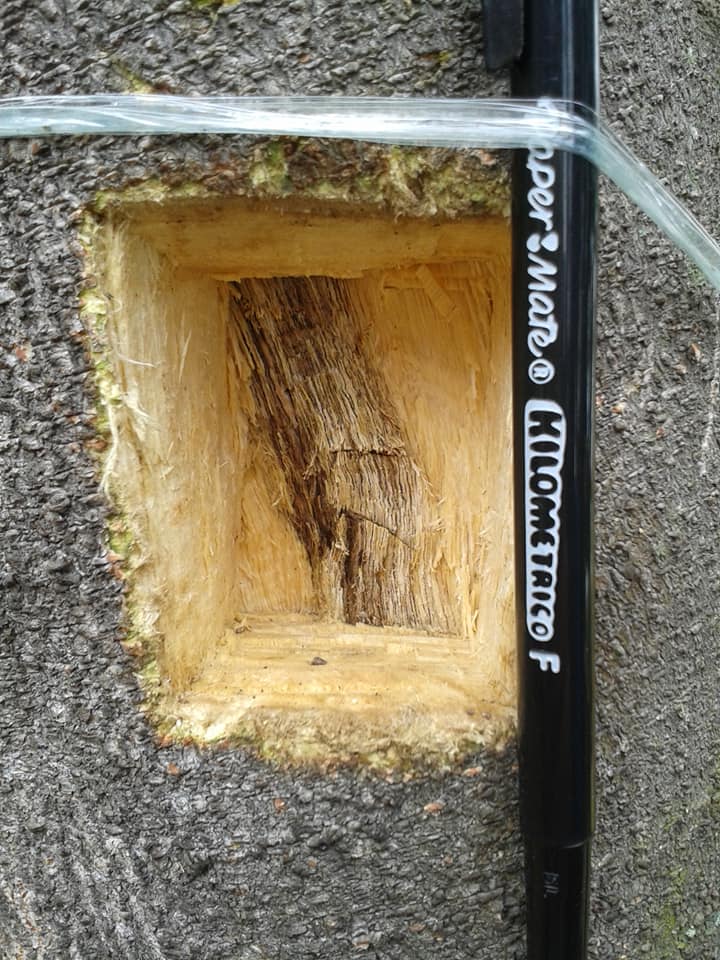 At point of injection … inoculant 500ml / hole … substantially rotton wood is visible … this indicates many inoculant operators have shifted to multiple holes injection to minimize the rotten waste during  harvest