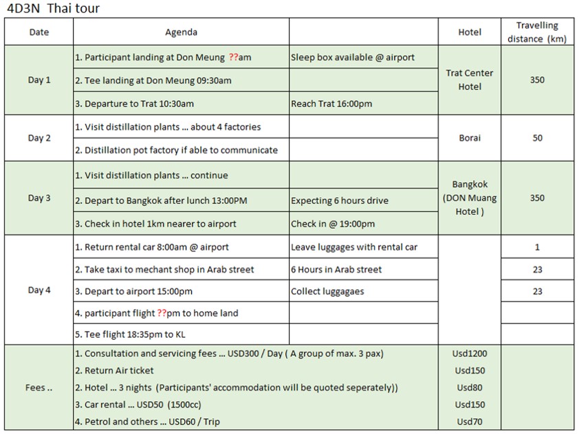 Following is the proposed program to cater general needs unless otherwise specifically requested and this program is designed SELECTIVELY to those Agarwood interested participants only. Shorter study tour can be customized to your needs. After all, this is NOT a shopping trip, please leave your loved ones at home.