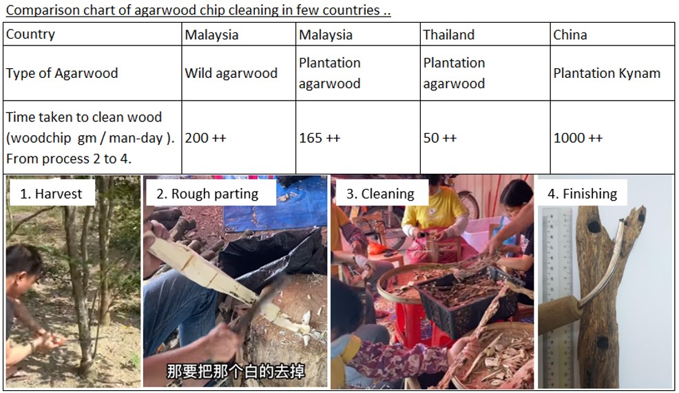 For ordinary agarwood species, patience and knowhow are equally required to selectively produce marketable quality woodchip.