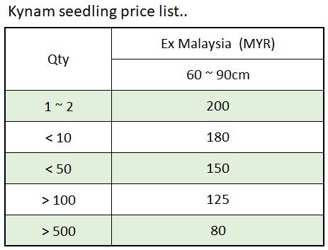 A23. It is very new in Malaysia. Last year 2019, there were few growers actively initiated plantation kynam from China, scions and seedlings were flown to Malaysia, the kynam propagation started from sketch.