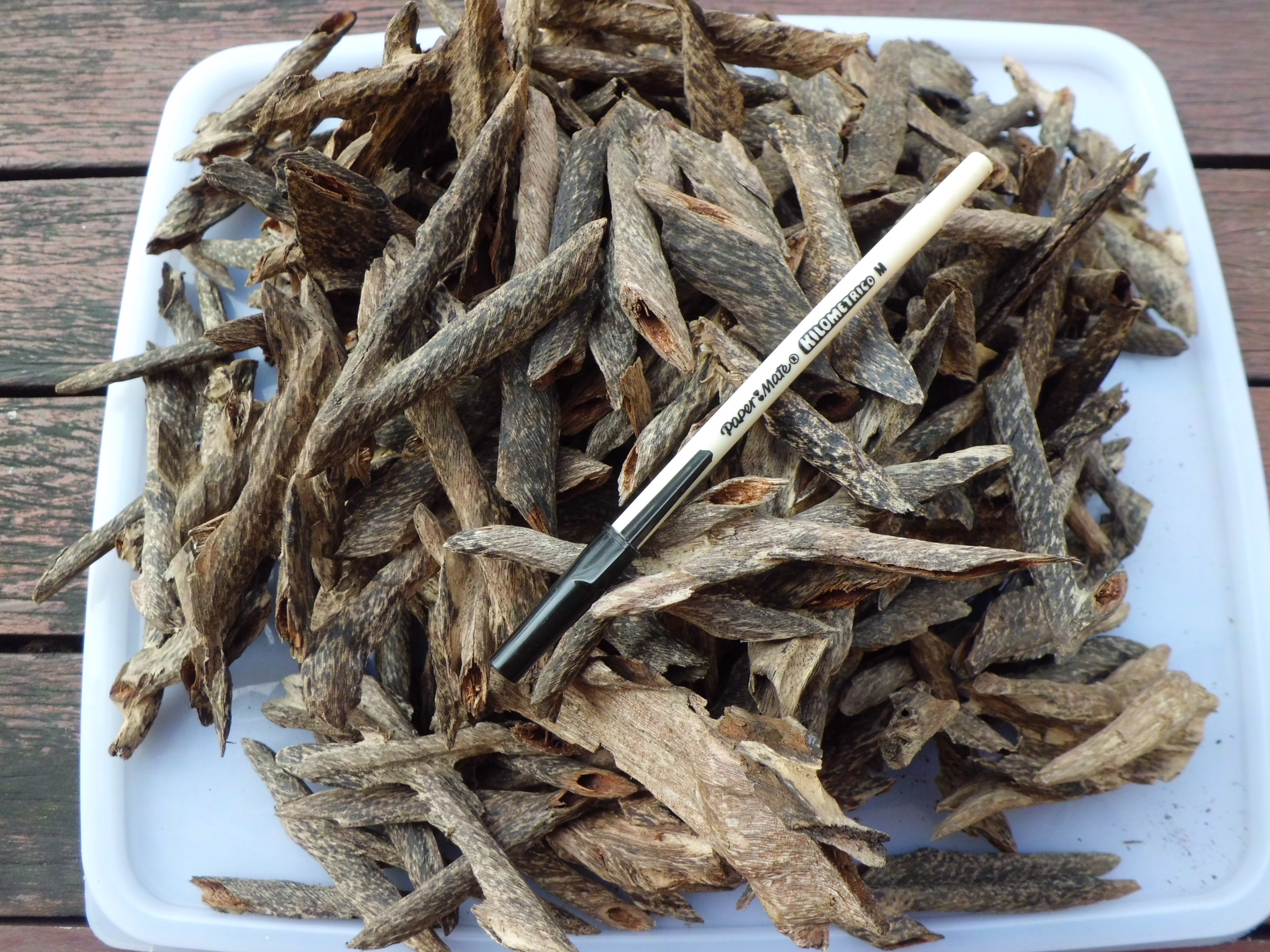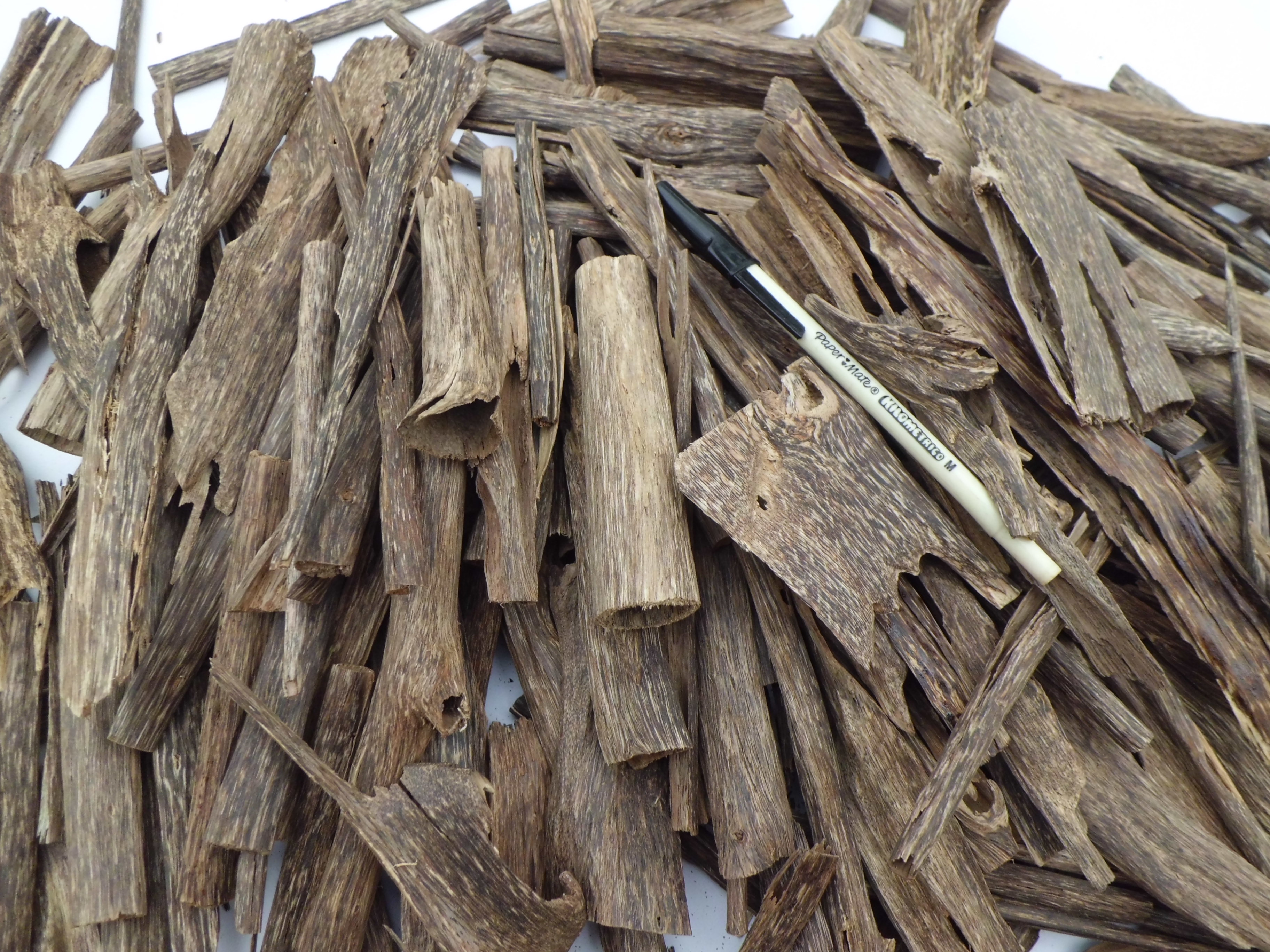 The high prices for agarwood and the local depletion of resources in the wild have led to a variety of efforts to stimulate the growth of agarwood. Methods to cultivated agarwood have been developed and it can now be produced in a sustainable way in plantation grown trees. The products shown are 100% cultivated Agarwood.